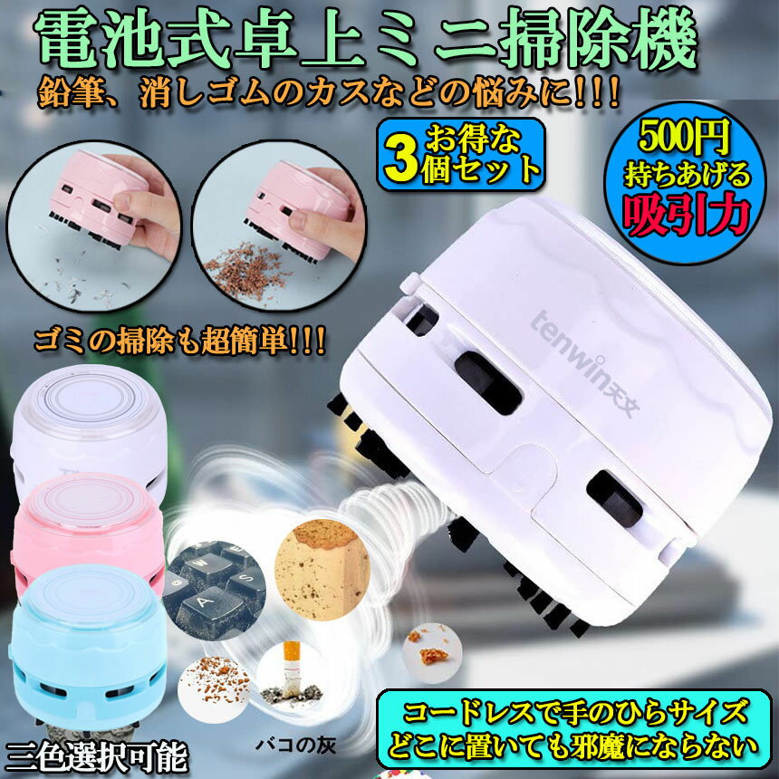 上クリーナー ハンディ掃除機 卓上そうじ機 卓上掃除機 3個セット 卓強力吸引 ミニクリーナー 消しゴムかす ゴミやホコリ 食べこぼし 勉強机 ミニ 掃除機 おしゃれ コンパクト デスクトップ コードレス 電池式 事務用品 文房具 ステーショナリー