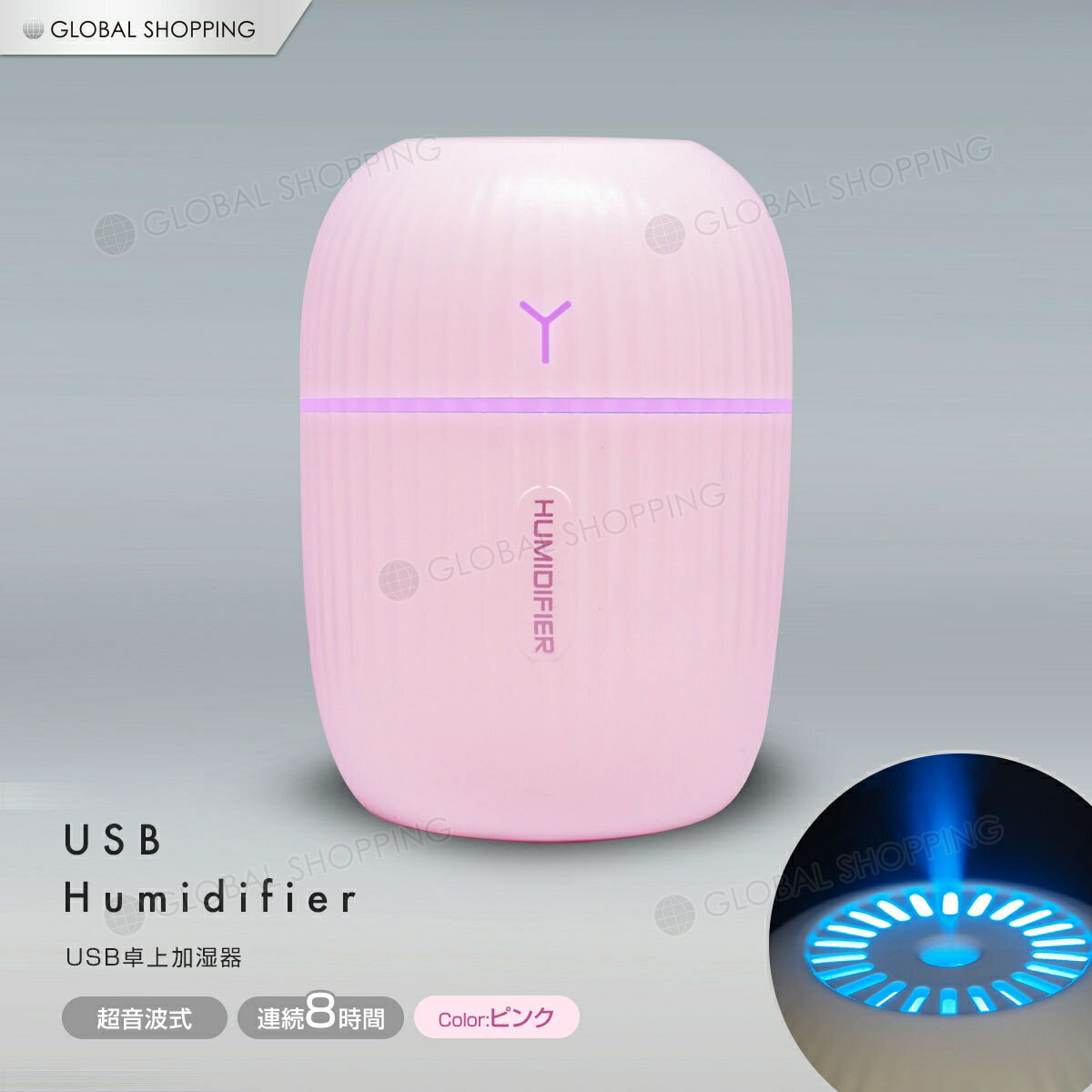 保証付 加湿器 卓上加湿器 USB 小型 超音波 大容量 ミストボックス USB加湿器 卓上 オフィス 長時間 車載 携帯加湿器 7色LEDライト ミニ 加湿機 マイクロミスト デスク ピンク