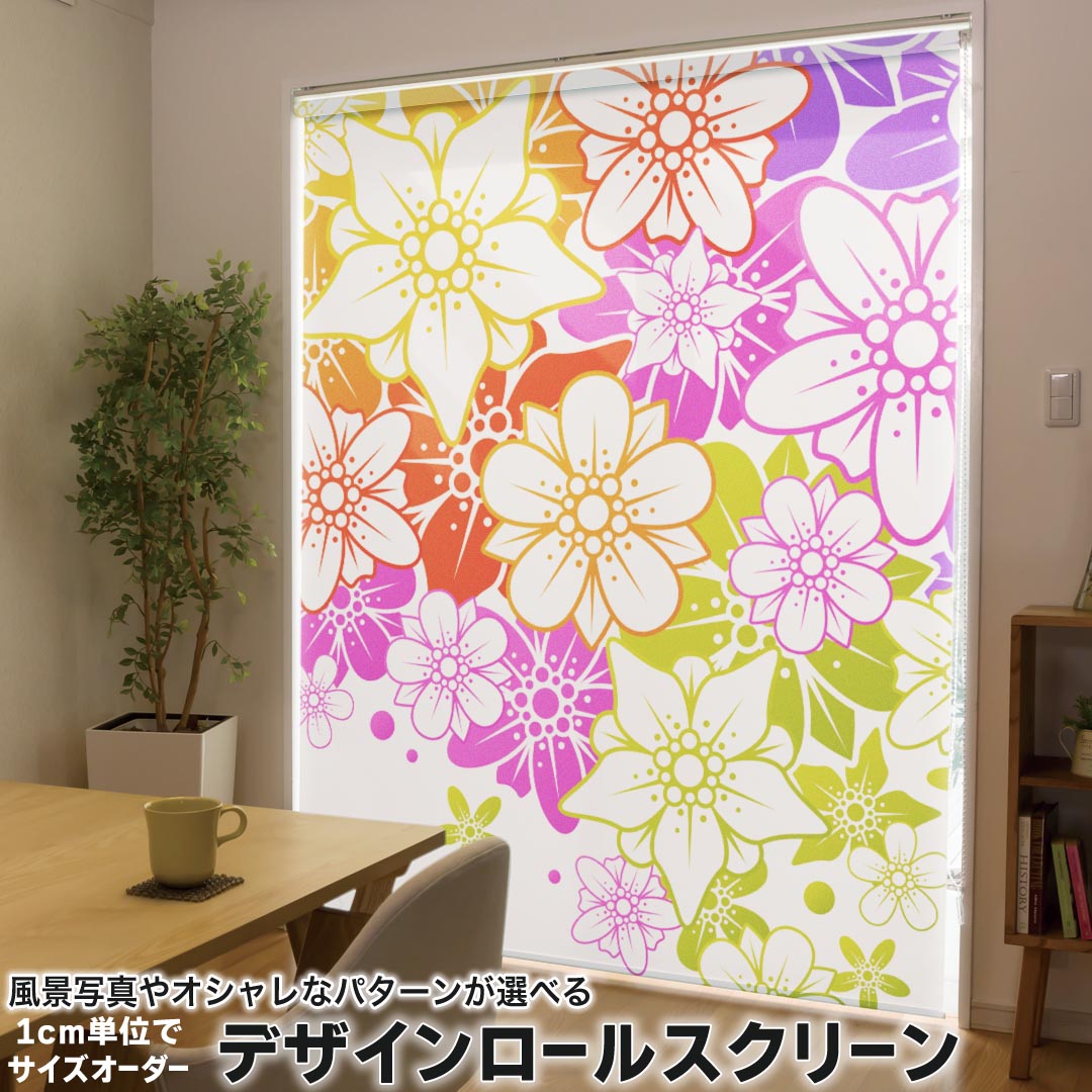 1cm単位サイズオーダー ロールスクリーン ロールカーテン オーダーメイド タチカワ 日本製 間仕切り カーテン 採光 非遮光 目隠し UVカット カーテンレール チェーン式 プル式 007644 ユニーク 星 スター カラフル レインボー