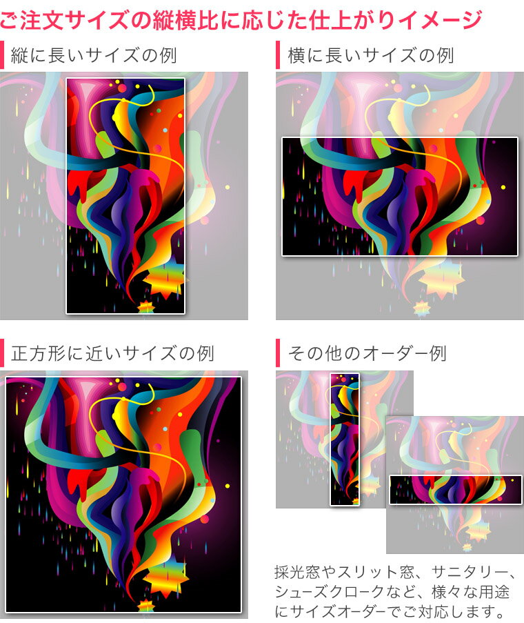 【デザインについて】ご注文サイズの縦横比によってデザインの表示範囲が異なります。