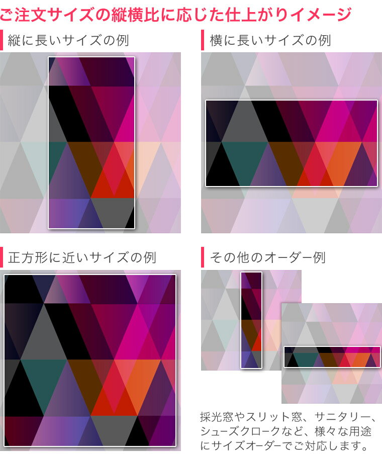 【デザインについて】ご注文サイズの縦横比によってデザインの表示範囲が異なります。