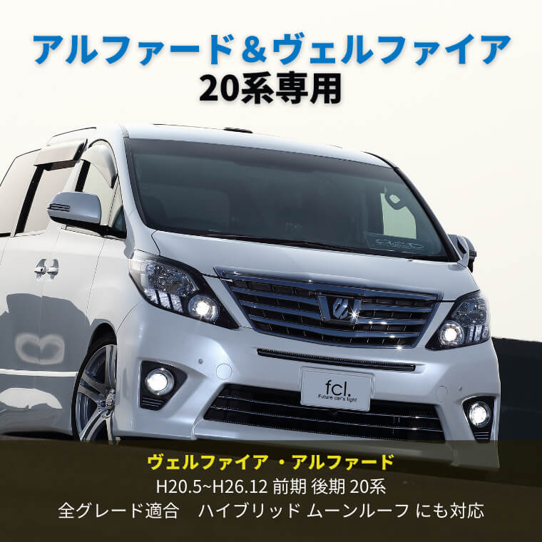詳細はこちらの適合表をご確認ください ヴェルファイア・アルファード H20.5〜H26.12 前期 後期 20系 全グレード適合 ハイブリッド・ムーンルーフにも対応 ※バニティ/カーテシ/ラゲッジは明るさの調整はできません。