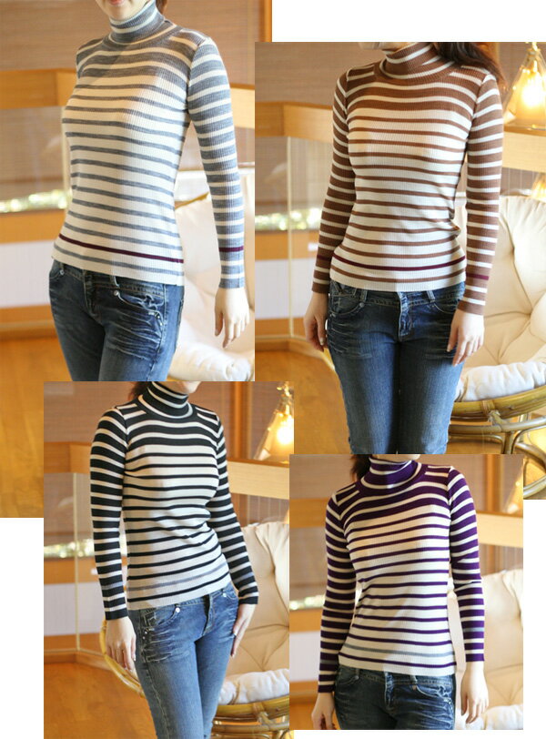 売り尽くし-訳ありも訳ナシも!!-小技がピリリのリブ編みボーダーニット(返品・交換・ギフト包装不可)