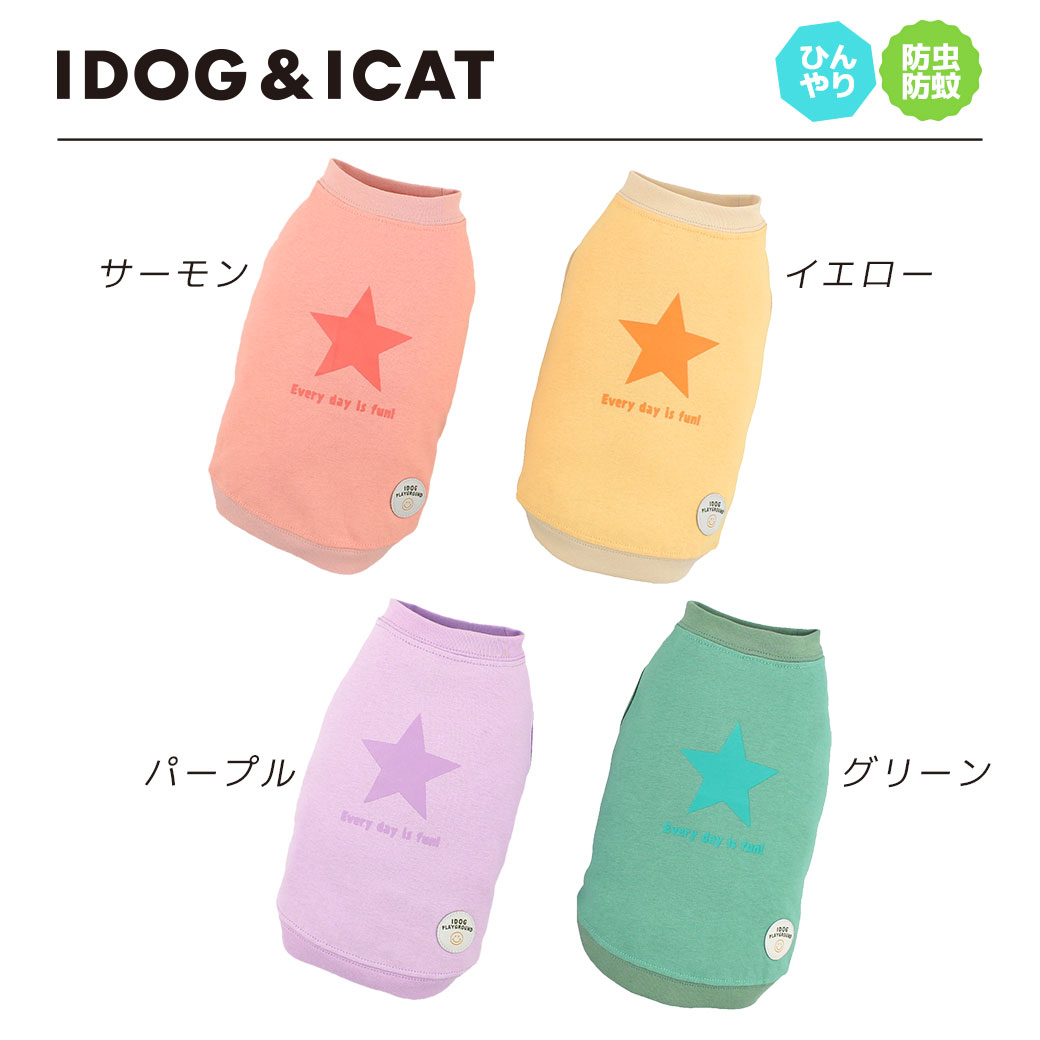 カラー:サーモン/イエロー/パープル/グリーン 素材:綿100% サイズ:XS/S/M/L/XL/XXL/F/DS/DM/DL 生産国:中国(企画・デザイン:日本) 特性:moscape+COOL防蚊・防虫・快適温度キープ機能 メーカー希望小売価格はメーカーサイトに基づいて掲載しています【 防虫 涼感 犬の服 】 iDog MOSCAPE+COOL スタープリントタンク 防蚊 ひんやり アイドッグ 【 犬の服 ドッグウェア 】 背中のスタープリントが目を引くタンク。