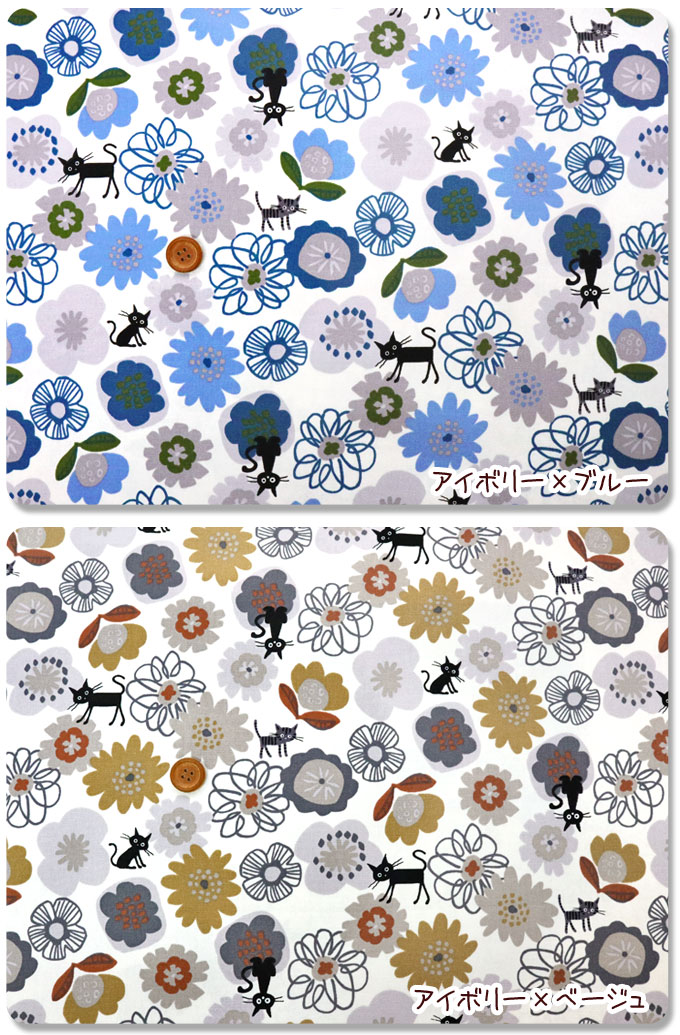 ▼CoCoLand『フローラル*CoCo♪』≪オックスプリント≫※112cm幅 コットン100%|ココランド 黒猫柄 ねこ ネコ キャット 花 フラワー 生地|