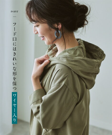 フードの形をを立体的に保つワイヤー入りのフードが顔まわりをすっきり。