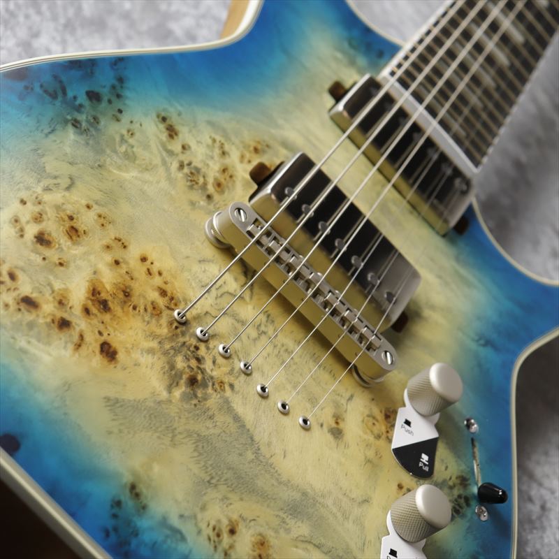 Body Material:Alder Body Type:Exile Top Material:Burled Poplar Top Contour:Flat Top w/Arm Cut Neck Material:3 Piece Maple Scale Length:25 1/2" (648mm) Construction:Bolt-On Neck Neck Shape:Slim D Fretboard Material:Ebony Inlays:Pearloid Block # of Frets:24 Jumbo Fretboard Radius:16" (406mm) Nut:PPS (Polyphenylene Sulfide) Nut Width:1 7/8" (48mm) Tuners:Mini Grover Knobs:Dome Brushed Nickel Hardware Color:Brushed Nickel Bridge:Tune-O-Matic (String Thru w/Ferrules) Pickup (Neck):EMG 66 TW7 Splitable Brush Chrome Pickup (Bridge):EMG 57 TW7 Splitable Brush Chrome Binding:5 Ply W/B/W/B/W Finish:Satin Turquoise Burst Country of Origin:Indonesia Truss Rod:Dual Action Controls:One Volume / Tone / 3 Way Blade Strings:D'Addario EXL120-7 (.009-.054) ※商品の特性上、少々のすり傷や塗装のムラ等見られる場合がございます。