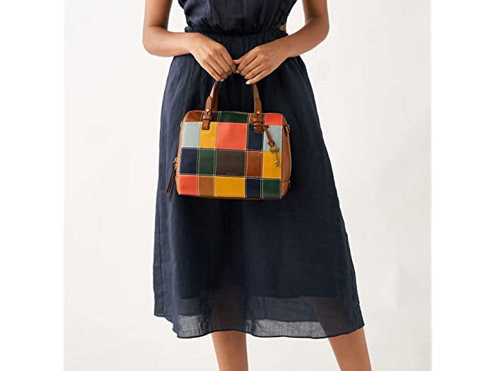 (取寄) フォッシル レディース Fossil women Rachel Leather Satchel Brown Patchwork